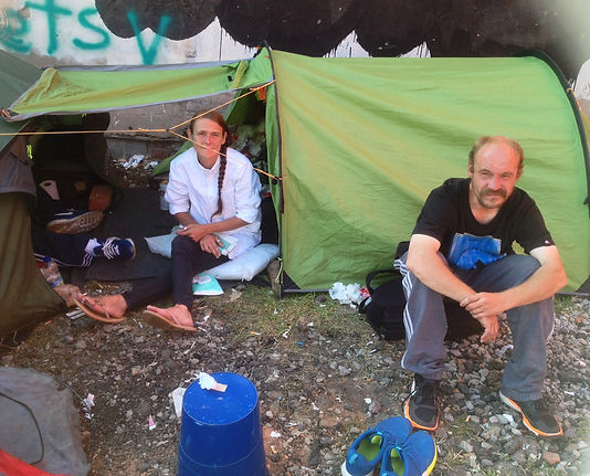 I heard James before I fully saw him. He seemed preoccupied in his tent but invited me to sit down on the blue bucket beside it. As he began to clamber out, I caught glimpses of needles dotted around the tent and track marks between his toes. I dared not bring it up just yet.